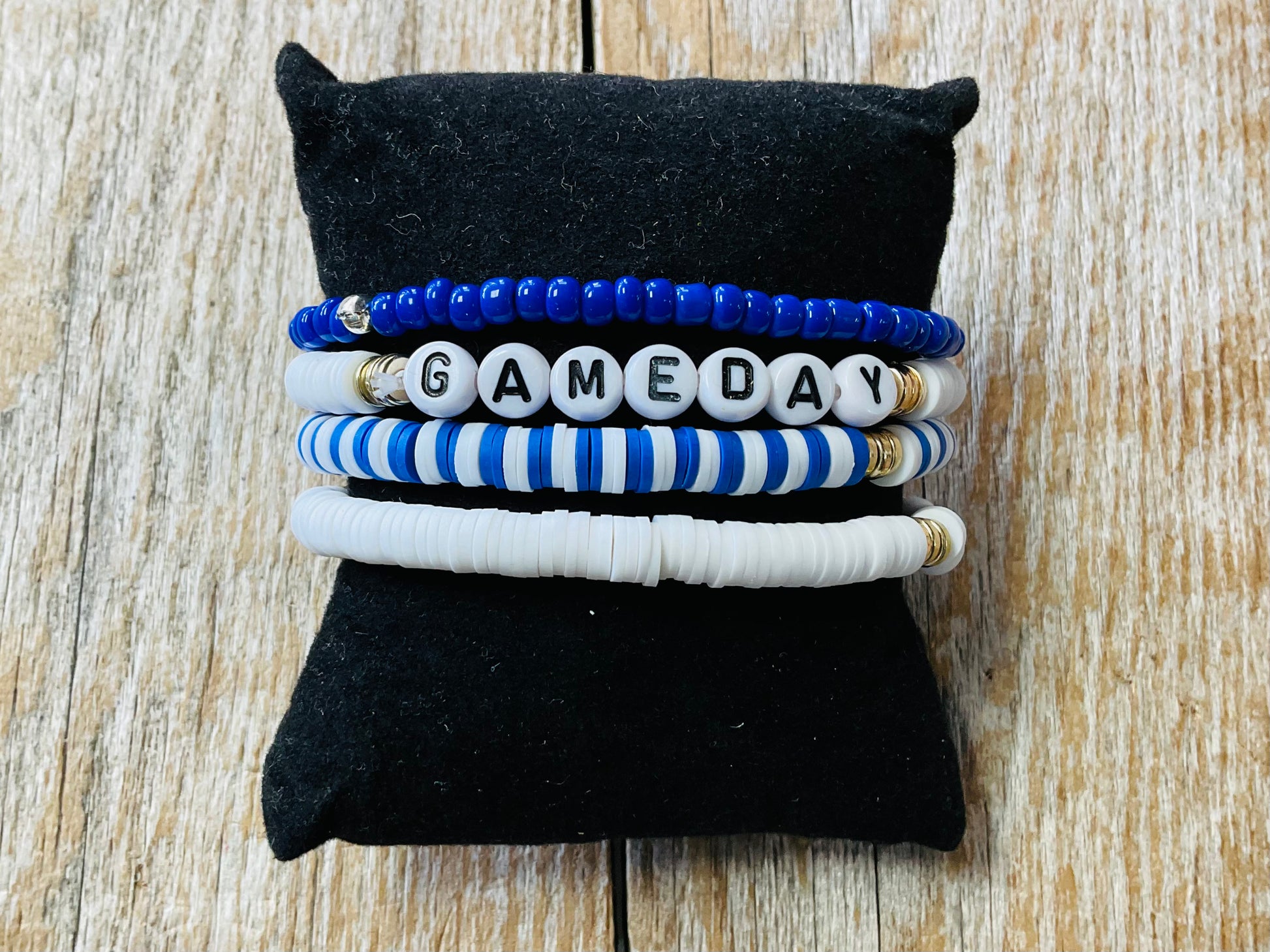 Upgrade your game day outfit with our Blue Heishi Bracelet. Made with durable materials, this bracelet is designed for all-day wear. Show off your team spirit while looking stylish and comfortable. Perfect for any sports fan.