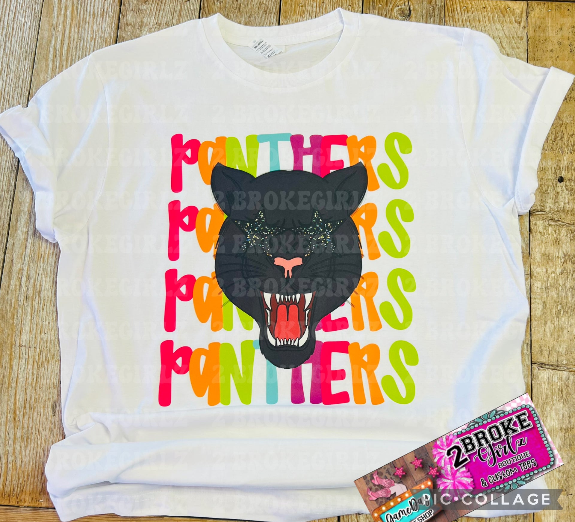 Stand out in style with our Rainbow Panthers Graphic Tee! With a vibrant design, this tee is perfect for showing off your school spirit. Get ready to turn heads and make a statement. Go Panthers!