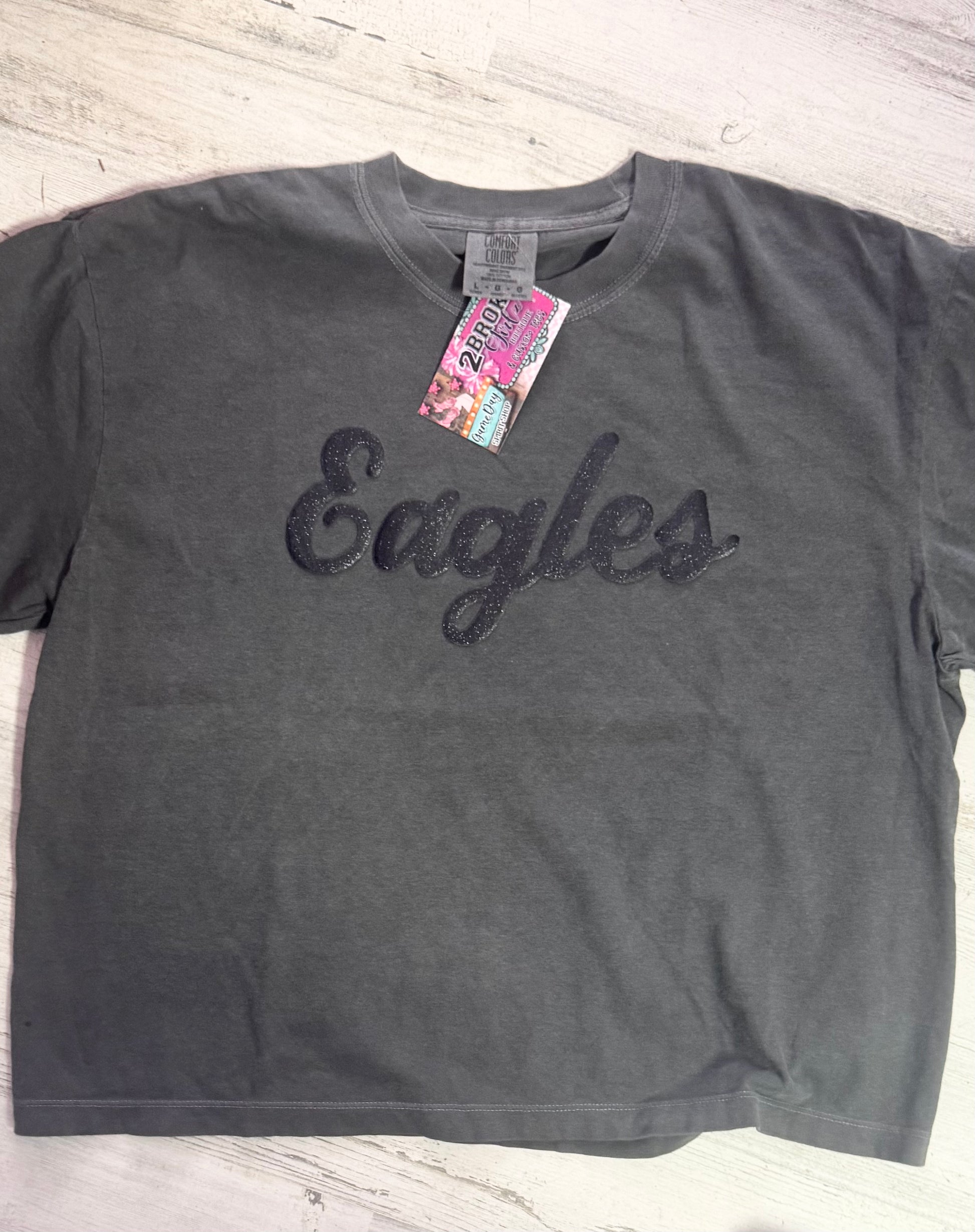 Eagles Glitter Puff Comfort Colors Mom Crop