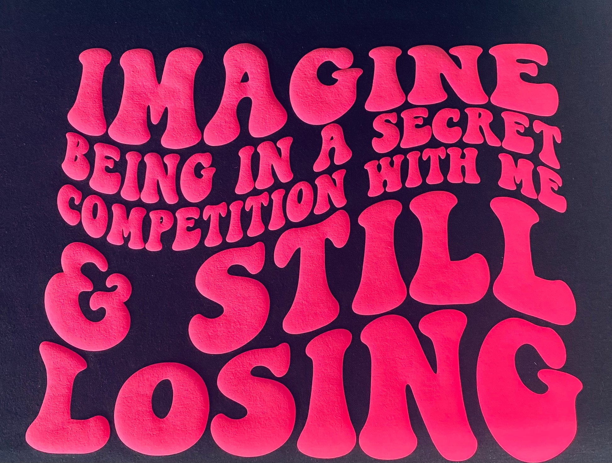 Step up your style game with our Imagine Being In A Secret Competition Me And Still Loosing Puff Tee. Made with high-quality materials, this tee boasts a unique design that will surely turn heads. With its bold statement, you'll feel empowered and confident in every step. Available now, wear it and show off your winning personality.