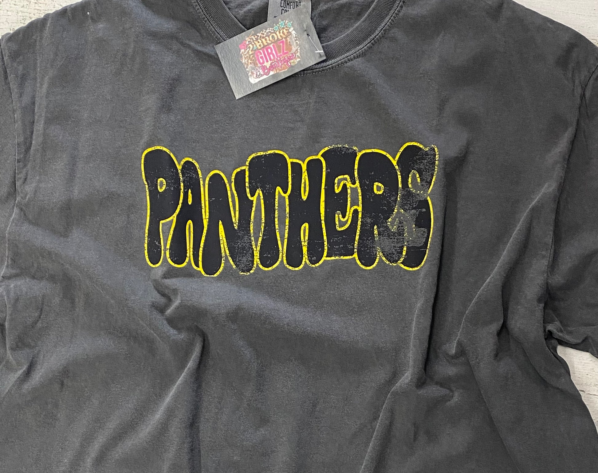 Show your team spirit with this distressed Panthers Mom Crop T-Shirt, perfect for a casual day at the game or for lounging at home. Let everyone know who your favorite team is with this one-of-a-kind crop top.