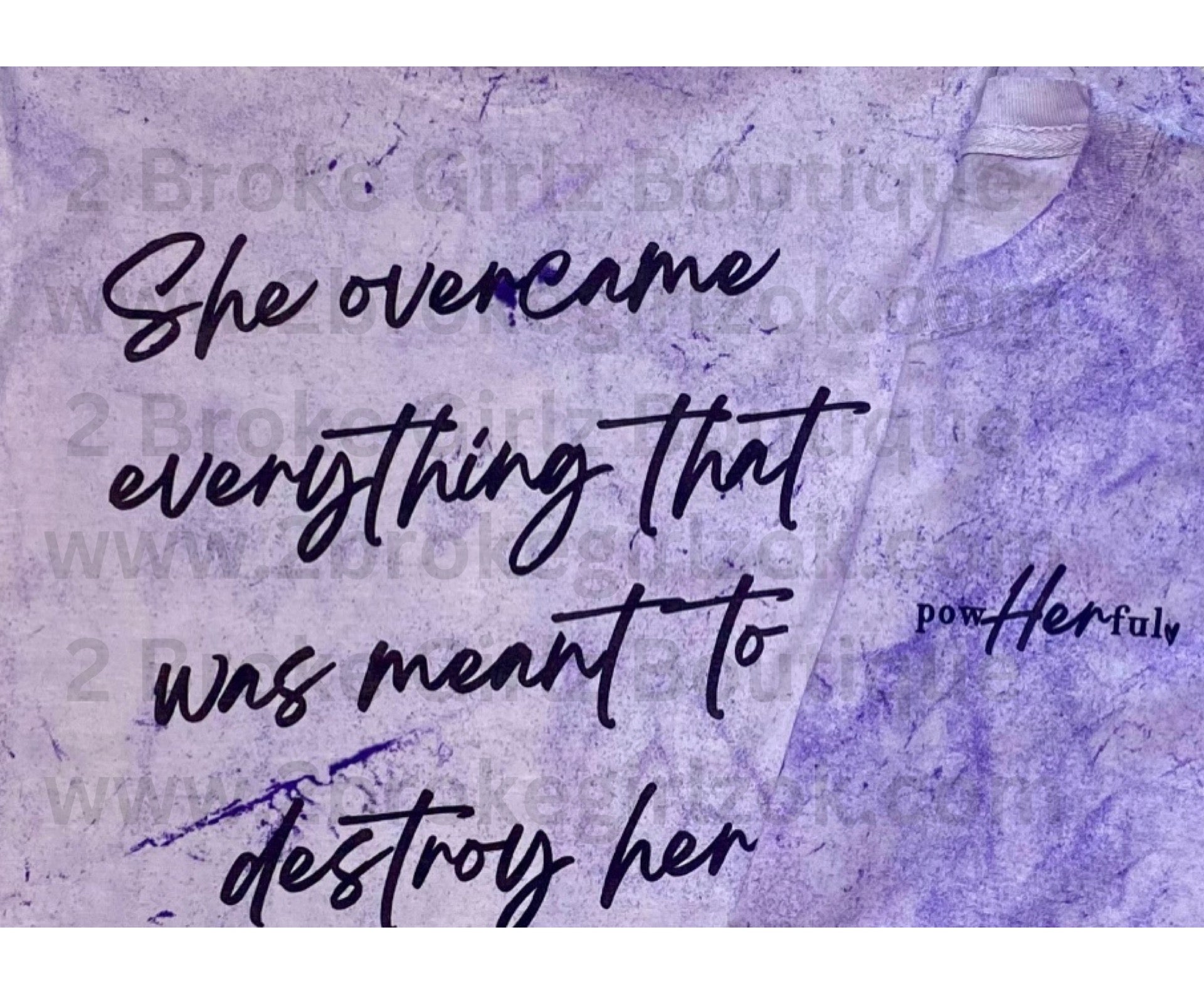 Unleash your inner strength with PowHerful's Comfort Colors Purple Acid Wash Tee. Made with comfortable materials and featuring a powerful message, this tee is perfect for anyone looking to overcome challenges and inspire others to do the same. Spread positivity and confidence with every wear.