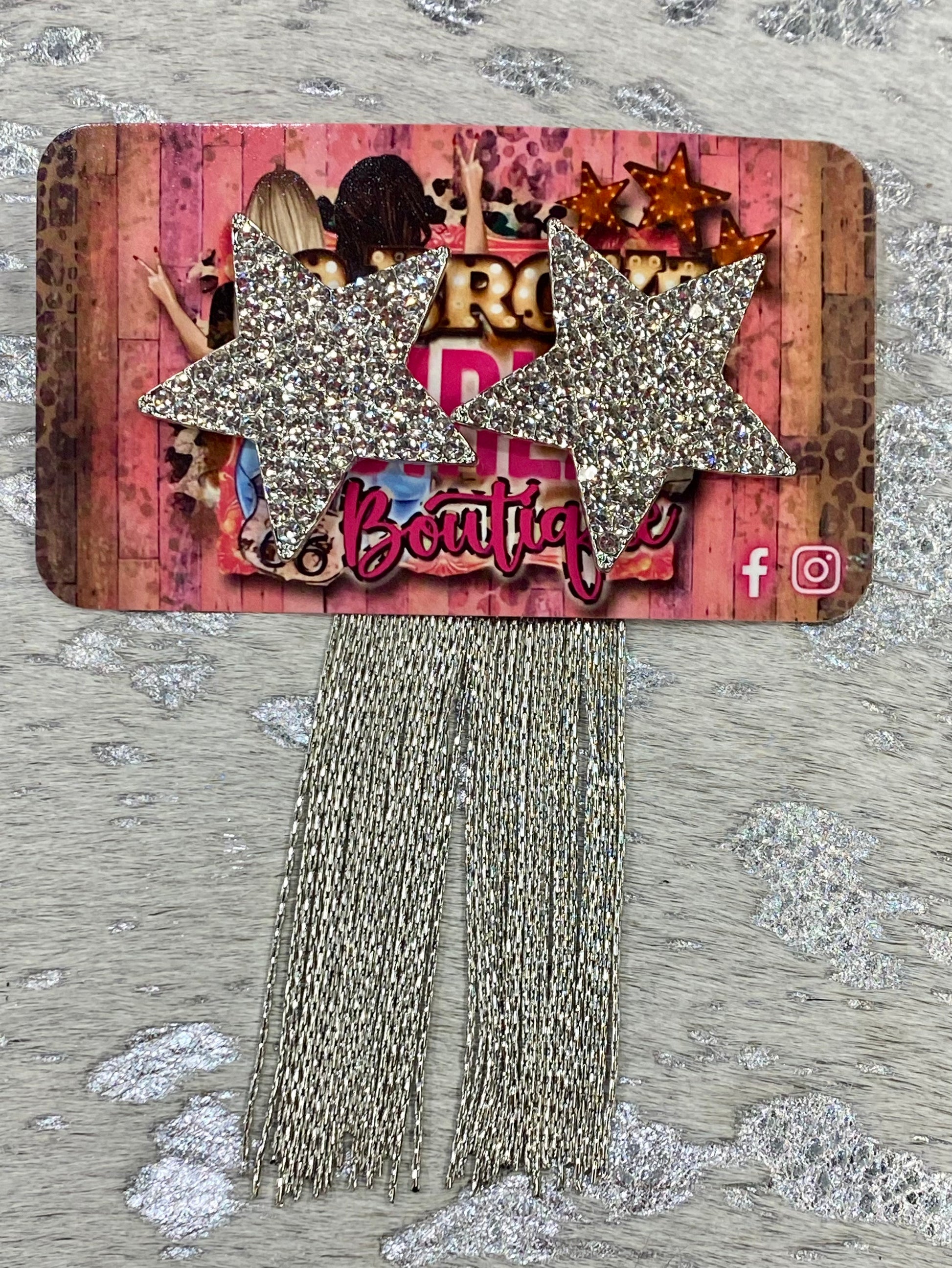 Make a fashion statement with these beautiful Rockstar Vibes Earrings Featuring intricately designed rhinestone stars that sparkle with every movement, these earrings will give your outfit a timeless charm. Lightweight and stylish, these earrings are perfect for any occasion.