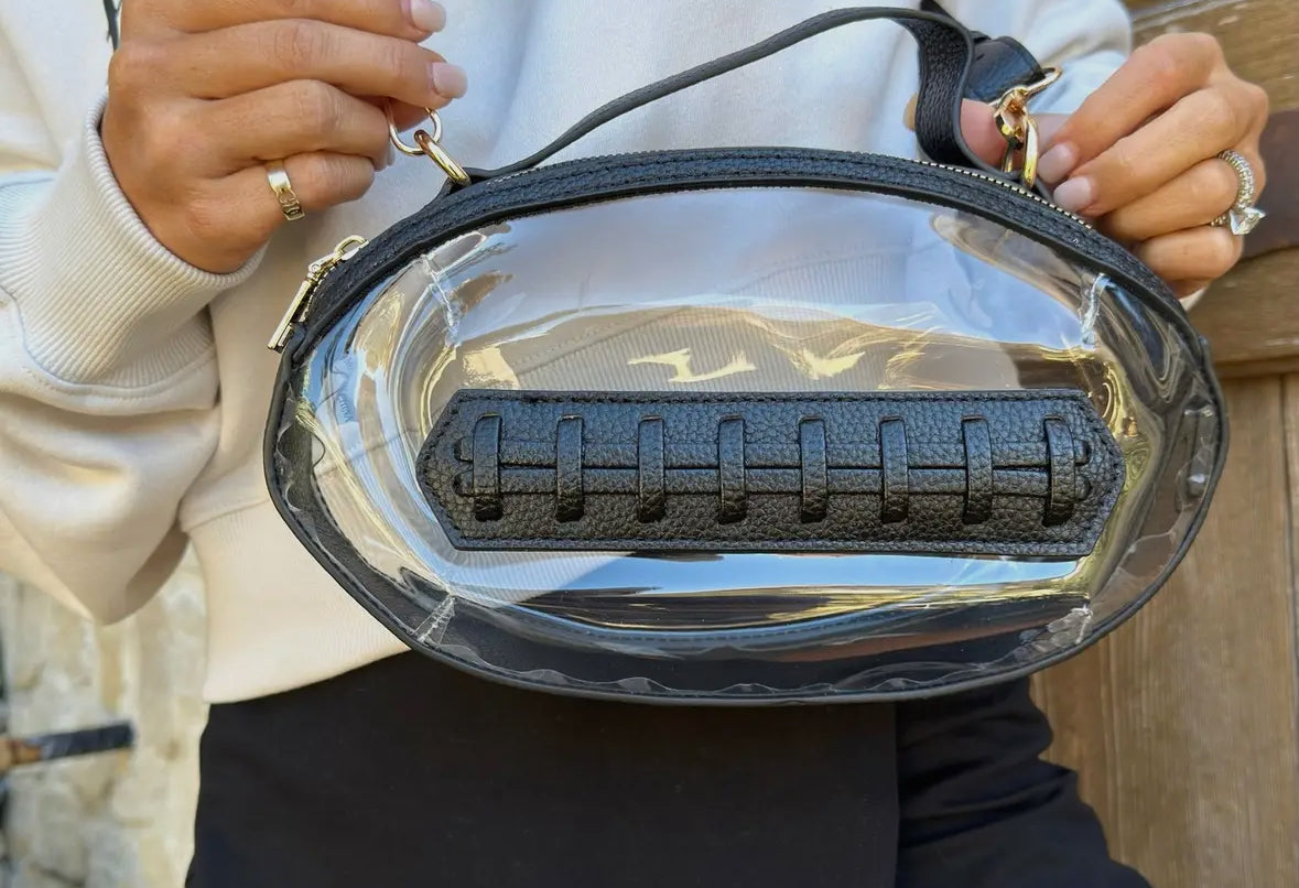 Score a touchdown in style with the Clear Game Day Football Stitch Detail Crossbody Bag. Not only is it the cutest bag on game day, but it also keeps your essentials close with its convenient crossbody design. Perfect for football fans who want to stand out in the crowd (and carry their stuff with ease).